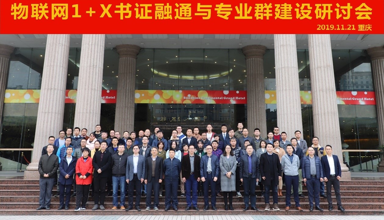 为深入贯彻《国家职业教育改革实施方案》、《关于做好首批1+X证书制度试点工作的通知》等系列文件精神,落实四部门发布的1+X证书试点方案,共同探讨“书证融通、育训结合”等教育模式改革,由重庆市物联网产业协会主办,重庆电子信息职业教育集团、重庆电子工程职业学院承办的“物联网1+X书证融通与专业群建设研讨会”于11月21日在重庆阳光五洲酒店隆重举行。协会会长单位中移物联网有限公司代表,协会秘书处单位中国信息通信研究院西部分院代表,海康威视、北京新大陆等企业代表以及重庆市内外中高职院校代表近百余人共同参会。