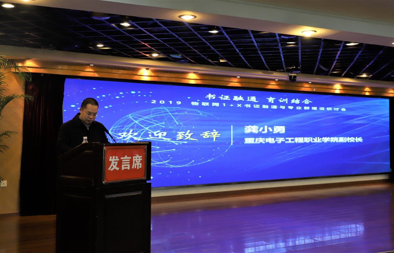 会上,协会教育与培训专委会秘书处重庆电子工程职业学院副院长龚小勇致欢迎辞,他表示愿与在坐各位嘉宾共同探讨职业教育的高质量发展,共同培养高质量技术技能人才。