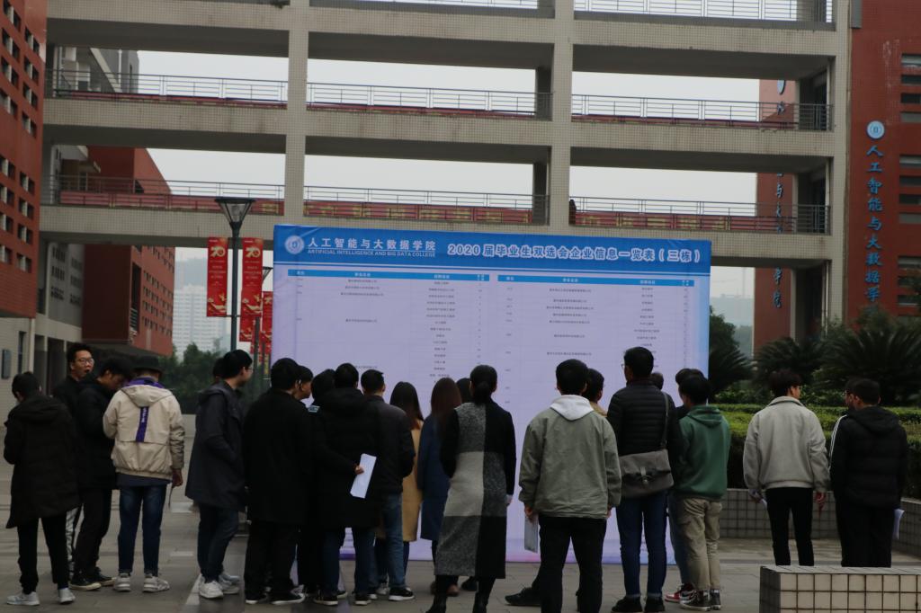 2019年11月21日,人工智能与大数据学院2020届毕业生双选会在南校区教学楼二、三栋平层顺利举行。双选会上,来自国内70余家企业提供就业岗位近1000个,参会企业涉及计算机、软件、建筑、教育、金融、管理、通信等众多行业领域,专业需求涵盖我校现有专业。我校2020届毕业生700余人参加此次招聘会。