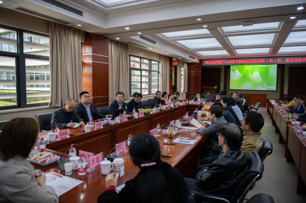 随后,与会的部分高职院校院长/系主任也介绍了本校开展1+X网店运营推广职业技能等级证书工作情况,并表达了学校领导高度重视、积极参与的态度和意愿,并就1+X网店运营推广职业技能等级证书试点热点问题进行讨论。