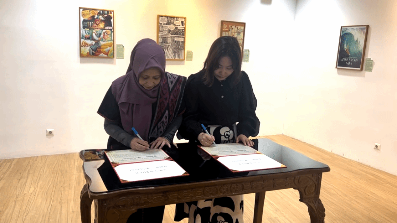 访学期间,印尼电信大学创意产业学院院长吴兰(Wulan)与开云电子平台_开云(中国)数字媒体学院副院长黎娅共同签署了“文化互鉴”倡议书,两校将在中-印尼文化对比研究、文物数字化技术应用以及传统文化的现代设计探索等方面开展合作,共同推动两国文化的传承发展与创新繁荣。