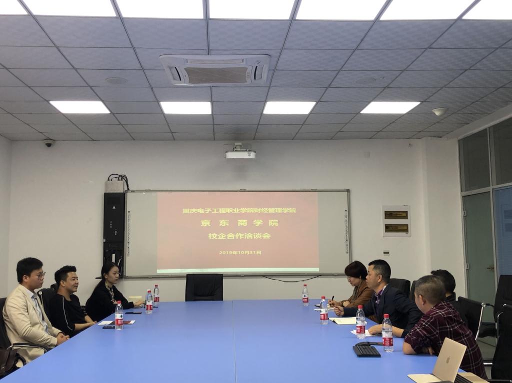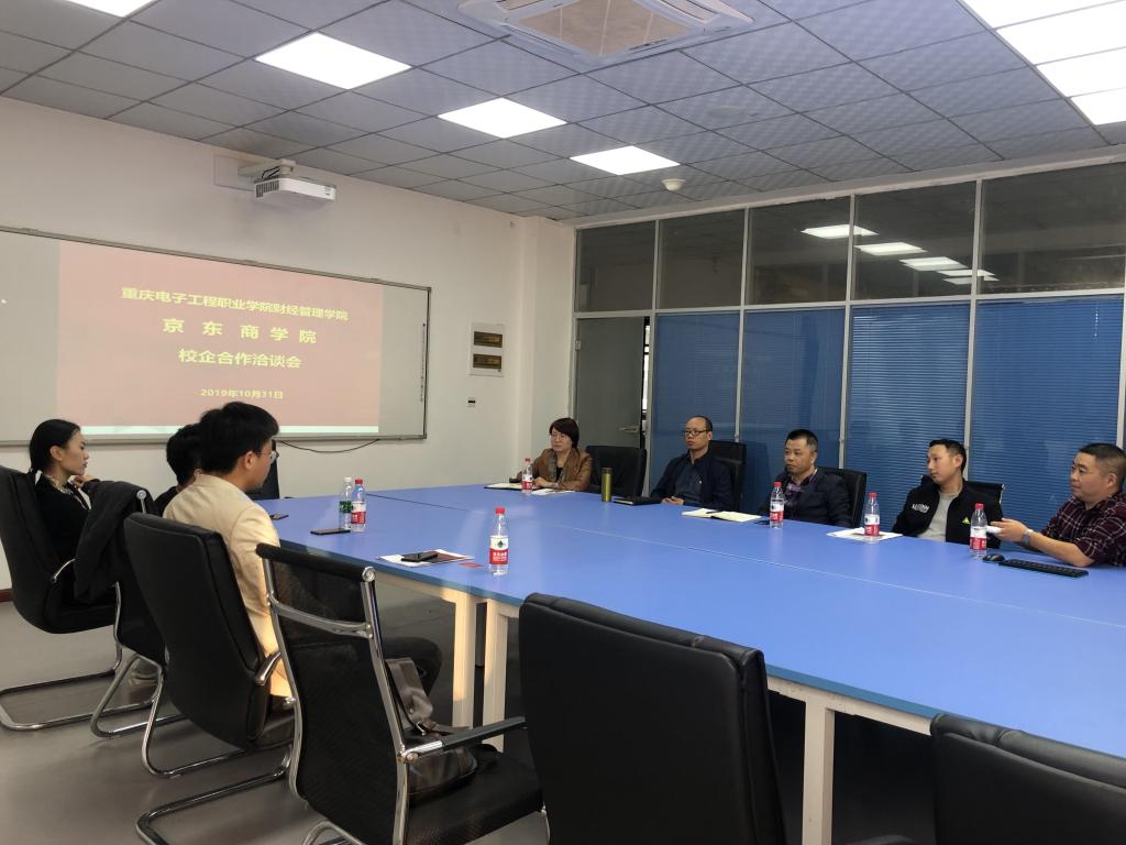 2019年10月31日,我校财经管理学院与京东大学电商学院在北校区10栋402举行校企合作洽谈会,共商新时代电子商务开云电子平台_开云(中国)大计。京东大学电商学院区域负责人刘炟志、区域经理孟桢楠与我校财经管理学院院长黄志平、副院长汪启航以及电子商务系、合作发展部相关负责人和教师出席了会议。