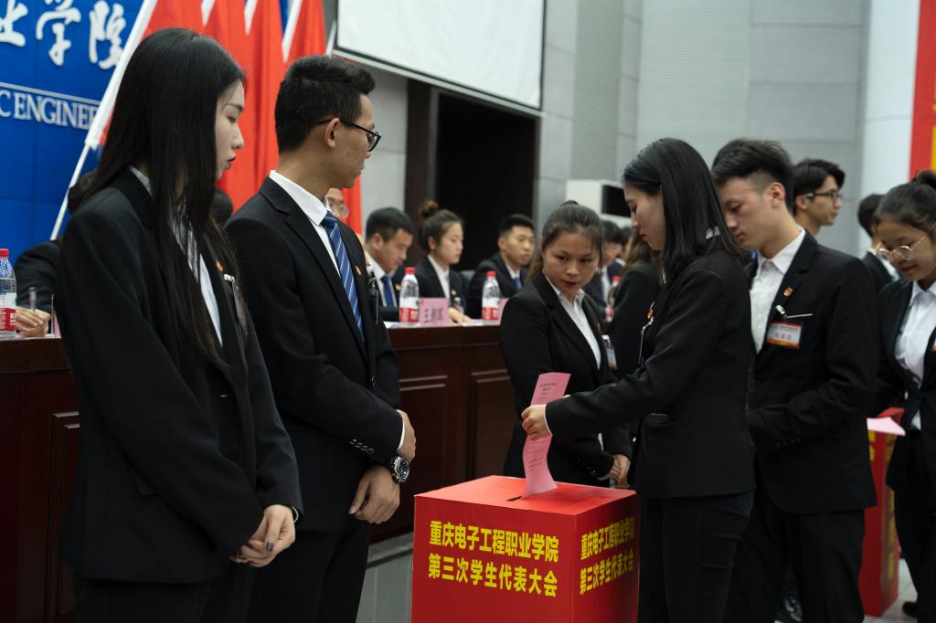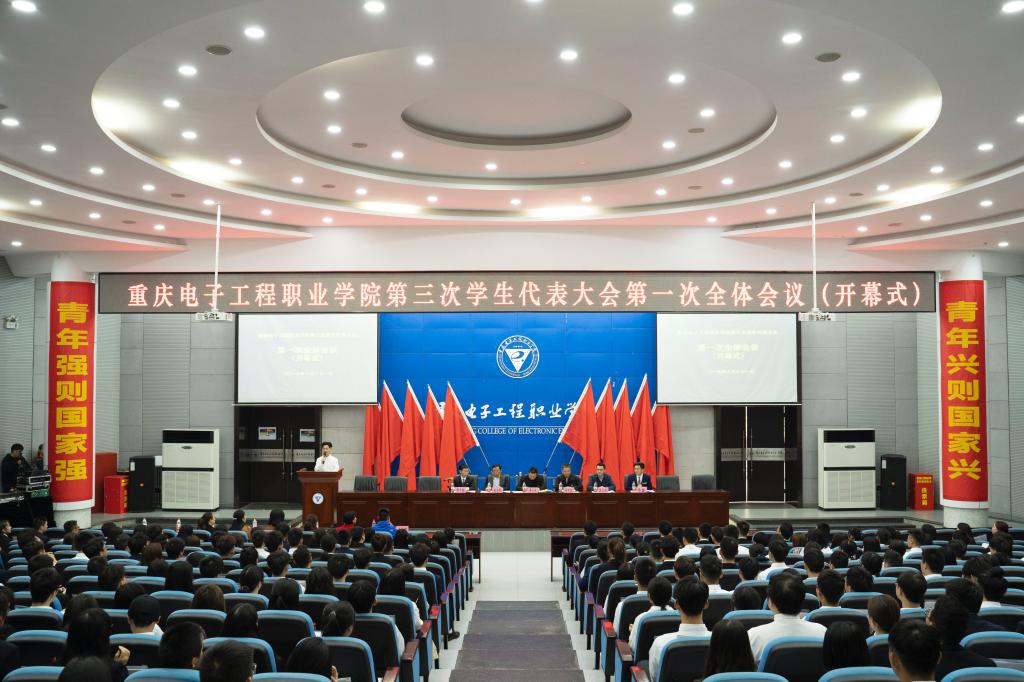 2019年10月31日,重庆电子工程职业学院第三次学生代表大会在博远厅顺利召开。党委副书记唐玉林,党委委员、副校长冉学农,党委学生工作部部长何光明,校团委书记袁玉刚,各二级学院团总支书记以及学生代表300余人出席开幕式。