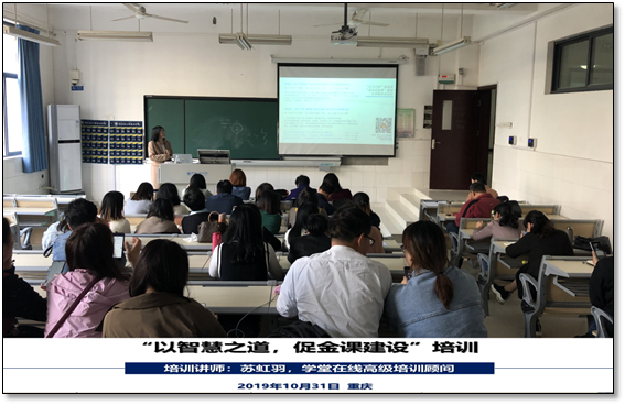 为加快推进我校现代信息技术与教学深度融合,树立课程建设新理念,推进课程改革创新,实施科学课程评价,我校于2019年10月31日在7-217进行主题为“以智慧之道,促金课建设”的培训。