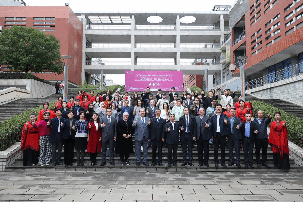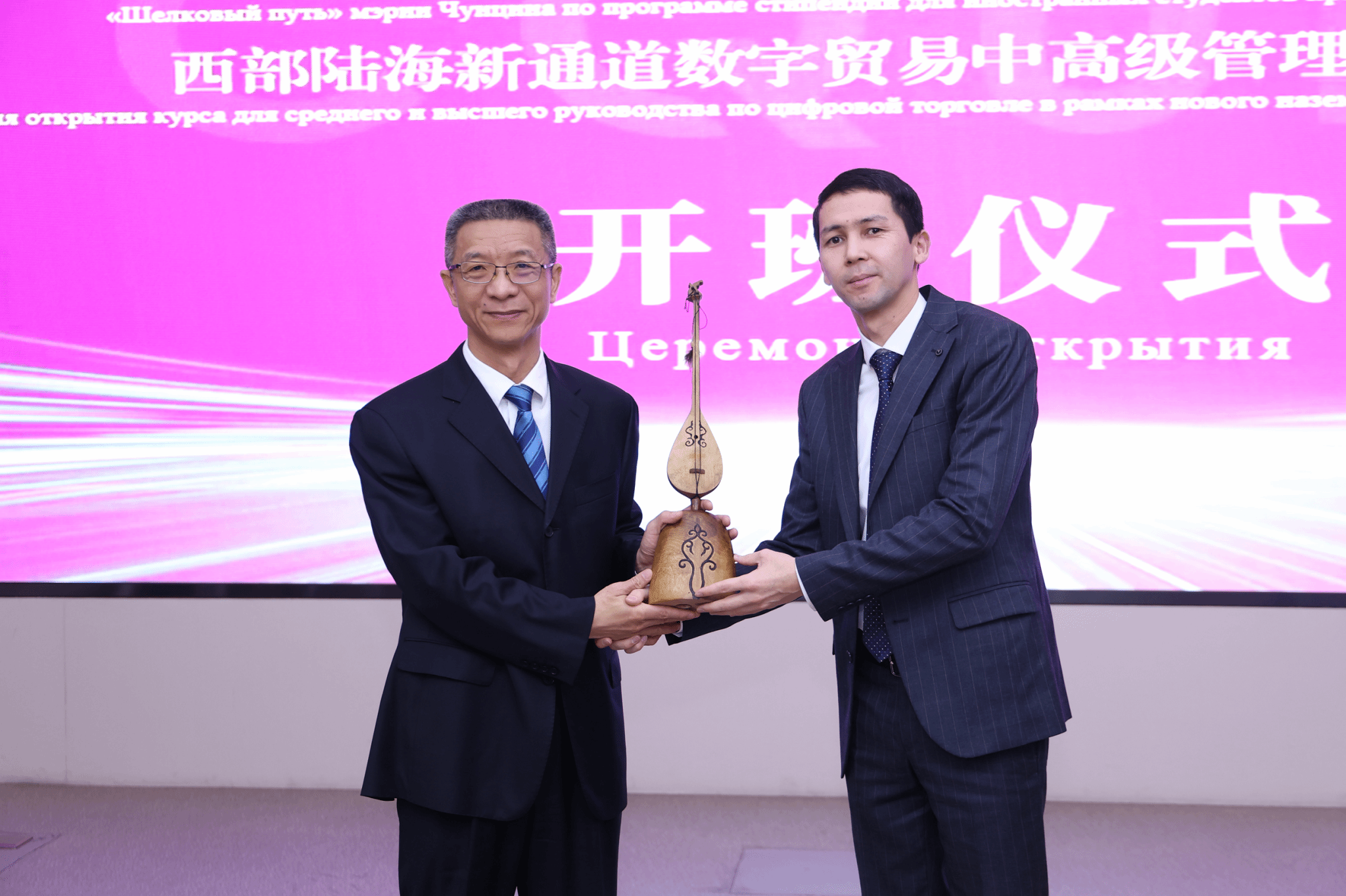 11月18日上午,重庆市人民政府外国留学生市长奖学金丝路项目“西部陆海新通道数字贸易中高级管理人员研修班”在我校博润厅举行开班仪式。哈萨克斯坦共和国科学和高等教育部学生社会化和德育管理局局长奥尔扎斯、重庆市教育国际交流协会会长邓睿、学校党委书记张伟等出席了开班仪式,来自各国的参训学员、学校相关部门负责人参加了仪式,开班仪式由学校副校长幸昆仑主持。