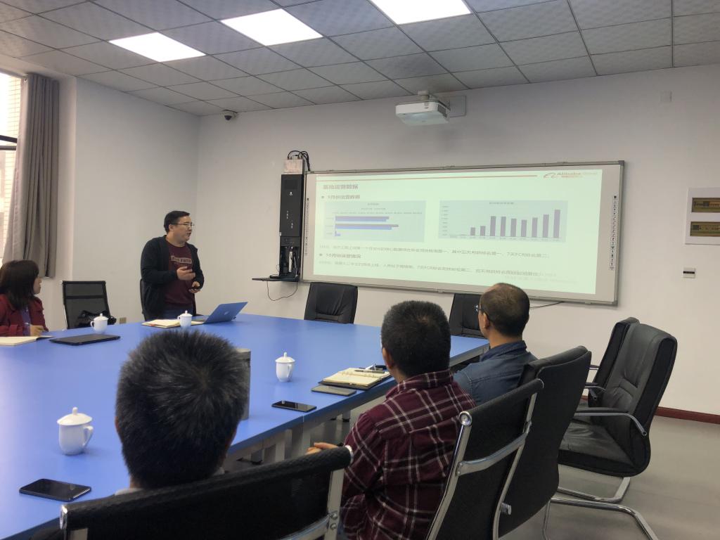 首先,运营团队负责人严治平老师从项目简介、运营数据、典型案例、学生个人发展等方面汇报了新零售基地项目运营情况。尤其提到我校新零售基地服务团队通过优质服务挽救生命的典型案例——“想要守护每一个未曾蒙面的你”已经入选阿里巴巴集团总部优秀案例,收到总部服务专家的高度点赞,在内部通报表扬。同时通报了“我校新零售基地9月份上线第一个月交付的核心数据综合排名同技能组第一,其中五天用研排名第一,7天FCR排名第二”的优异成绩。还有通过业绩资格审核、演讲、面试选拔等环节,基地共选出4名班组管理人员,作为阿里巴巴重点培养对象,享受就业绿色通道待遇。