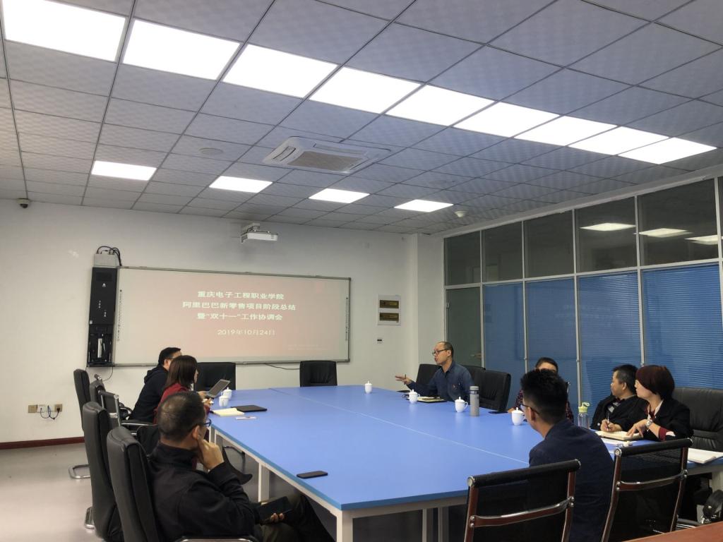 2019年10月24日,重庆电子工程职业学院阿里巴巴新零售项目阶段总结暨“双十一”工作协调会在学校10-402会议室召开。阿里巴巴校企项目负责人王娜、阿里巴巴重庆电子工程职业学院新零售人才孵化基地运营团队负责人严治平以及财经管理学院黄志平院长、汪启航副院长、电子商务系董征宇主任、合作发展部王希琼主任以及双方驻场教师出席了会议。