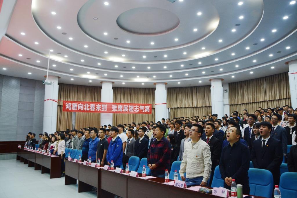 随后全体参会的第二届成员在旗下庄严宣誓,宣誓过后全体成员起立并齐唱《光荣啊!中国共青团》。嘹亮的歌声回荡在会场,组成的旋律将我们希望学院变得更好的共同梦想紧紧交织在一起。