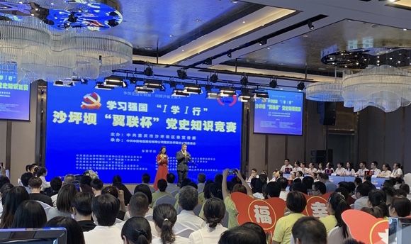 我校由党委副书记唐玉林、组织部长刘洪光、通信学院党总支书记曾晓宏带队,由易圣、黄婧雯、钟敏、谢宗林四位教师组成的团队参赛。竞赛分为必答题、抢答题、你比我猜、观众答题等环节,知识竞赛的题目内容包含党章、党规、党史等内容,同时发挥区内红色资源丰富的优势特色,将红岩精神也融入其中。其间,来自沙坪坝区的基层社区宣讲员以《发挥“三个作用”,不负殷殷嘱托》为题,和大家分享了通过“学习强国”平台开展学习的心得。