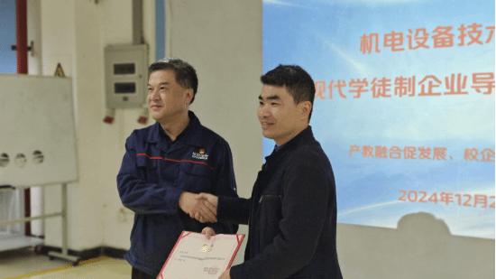 2024年12月2日,我校机电设备技术现代学徒制试点班开班暨拜师仪式在长安汽车刘源技能大师暨劳模创新工作室举行。机电设备技术现代学徒制试点班双师团队和全体学员参加此次活动。会议由学校智能制造与汽车学院航空工程系主任陈世江主持。
