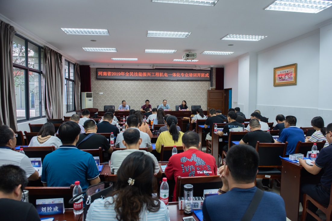 9月4日上午,“河南省2019年度全民技能振兴工程国内培训(中职)项目机电一体化专业培训班”开班式在我校国培基地1-101室举行,智能制造与汽车学院副院长叶勇,培训与继续教育中心副主任张铁力,智能制造与汽车学院机电一体化专业负责人易文翠,教学班主任刘晓燕,以及来自河南省各中职学校的专业教师参加开班式。开班式由培训与继续教育中心继续教育科科长张亚主持。
