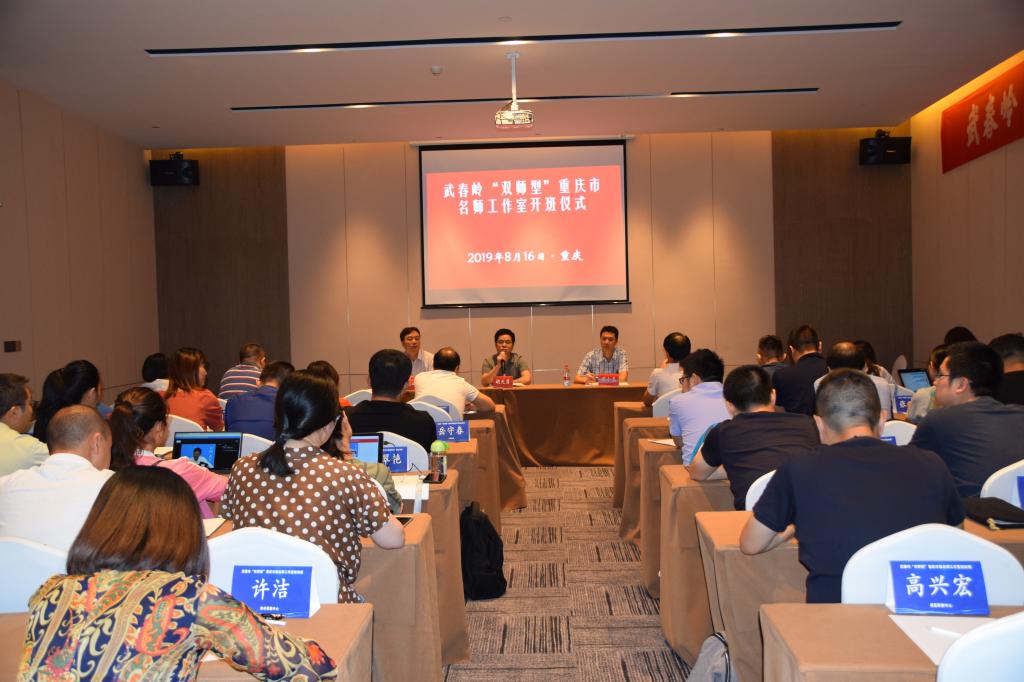 为贯彻落实深化新时代教师队伍建设改革精神,实施科教兴市和人才强市行动计划,加大职业院校“双师型”教师队伍建设力度,2019年8月16日上午,重庆市高职院校武春岭“双师型”名师工作室正式开班,重庆电子工程职业学院人工智能与大数据学院院长、国家级教学名师武春岭,重庆市教委代表胡天勇、重庆电子工程职业学院人力资源处副处长邓小龙,以及来自全市37所职业院校的近50名工作室学员出席了开班仪式。