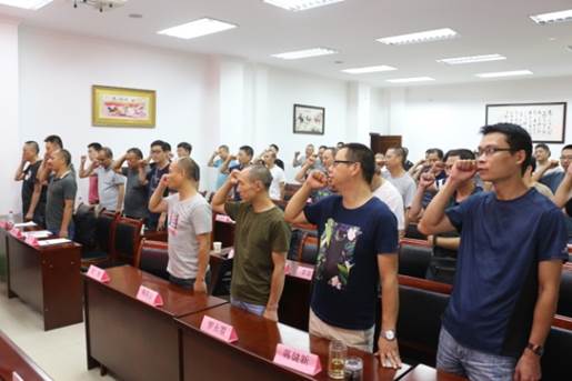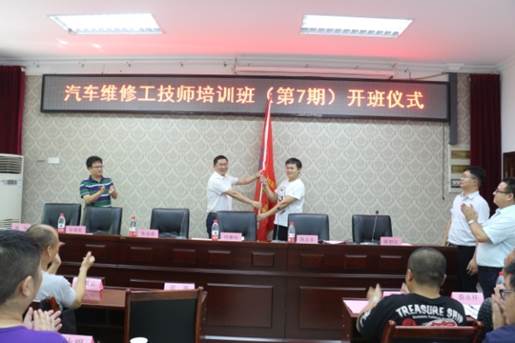 随后,任德均局长为培训班授旗,学员班班长王小波代表领旗,学习委员周伟、生活委员陈永明带领大家宣誓,为汽车维修事业持续发展而奋斗!