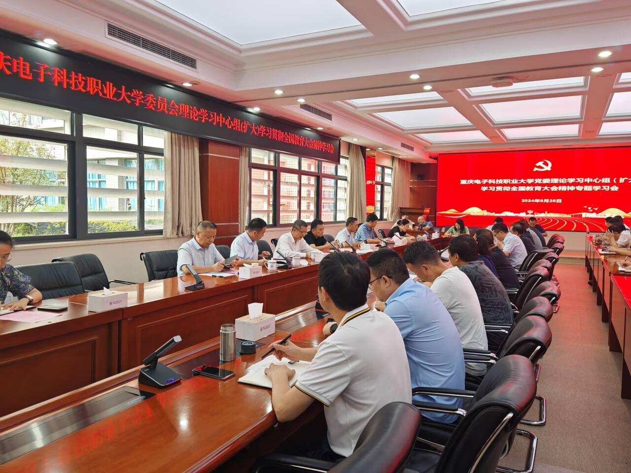 9月25日下午,学校召开党委理论学习中心组(扩大)学习会,专题学习习近平总书记在全国教育大会上的重要讲话精神和习近平同志《论教育》。校党委书记张伟主持学习会并作专题辅导报告。全体在家校领导、全体处级干部(含组织员)参加学习会。