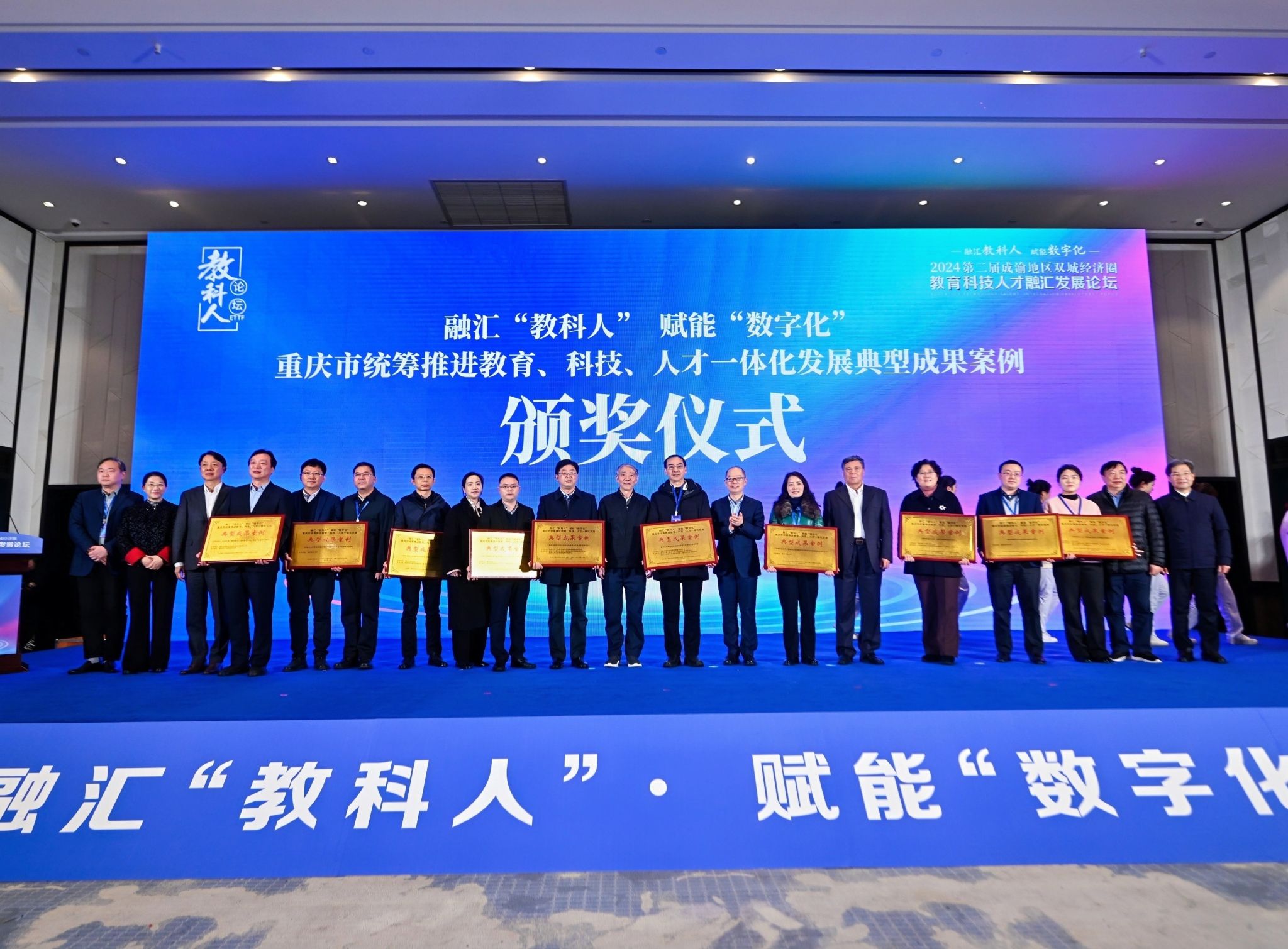 重庆市教育发展战略研究会会长、华龙网教育科技公司总经理王大伦主持成果发布环节,现场发布了《融汇“教科人” 赋能“数字化”:重庆市统筹推进教育科技人才一体化发展典型成果案例》名单,并进行了现场颁奖。