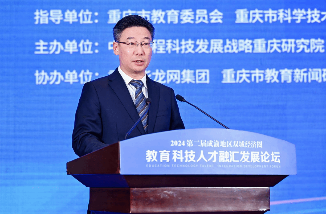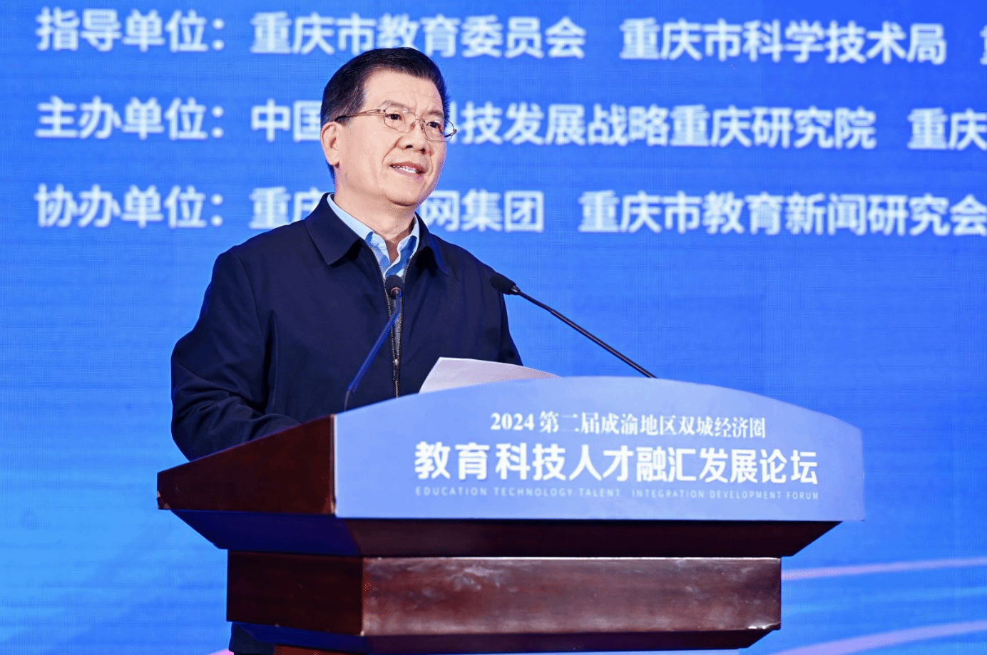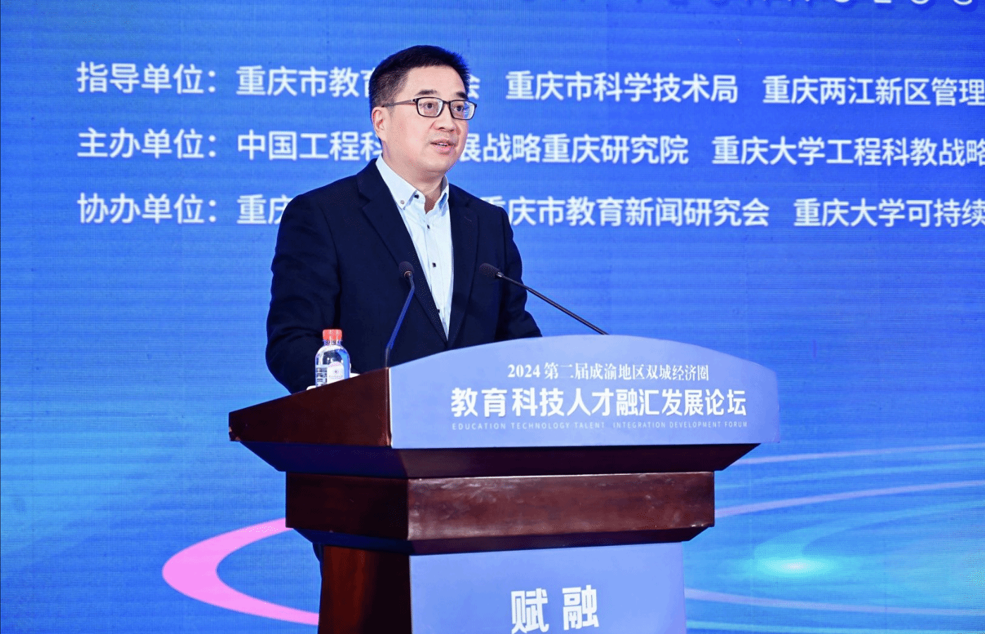 重庆市委教育工委书记、市教委主任刘宴兵在主旨演讲中表示,当前,重庆教育系统正锚定打造西部地区高质量发展增长极动力源的战略目标,坚持“川渝一盘棋”,启动实施《成渝地区双城经济圈教育协同发展行动计划》,配合推进《川渝科研机构协同创新行动方案》《成渝地区双城经济圈人才协同发展战略合作框架协议》,支持双城经济圈建设走深走实。刘宴兵从“推动数字时代双城经济圈建设走深走实,切实发挥教育科技人才一体发展的支撑作用”“推动数字时代双城经济圈建设走深走实,切实发挥高校在教育科技人才一体化发展中的引领作用”“推动数字时代双城经济圈建设走深走实,切实发挥教育科技人才自身数字化改革示范作用”三个方面进行了系统阐释和深入解读。