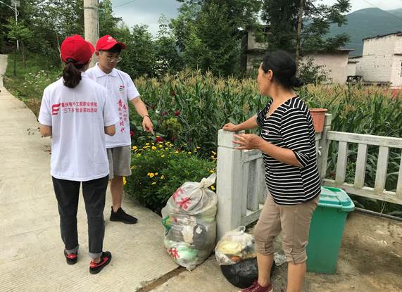 村民向实践团成员介绍每家每户每天的垃圾处理
