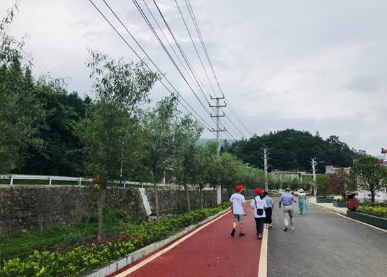 实践团团员漫步在黄田村的美丽步道