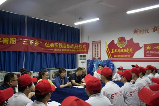 为深入贯彻落实重庆市2019年暑期“三下乡”社会实践活动出征仪式相关要求及精神,进一步明确“三下乡”目标要求,对志愿者进行出发前培训。2019年7月16日下午13:00,在赵旭、钟敏、张攀、徐东、刘意五位老师的带领下,通信工程学院2019年暑期“三下乡”社会实践活动出征仪式在13109活动室召开,党总支书记曾晓宏、党总支副书记万鹏出席了本次仪式,为四只队伍的志愿者们提出要求、加油打气。