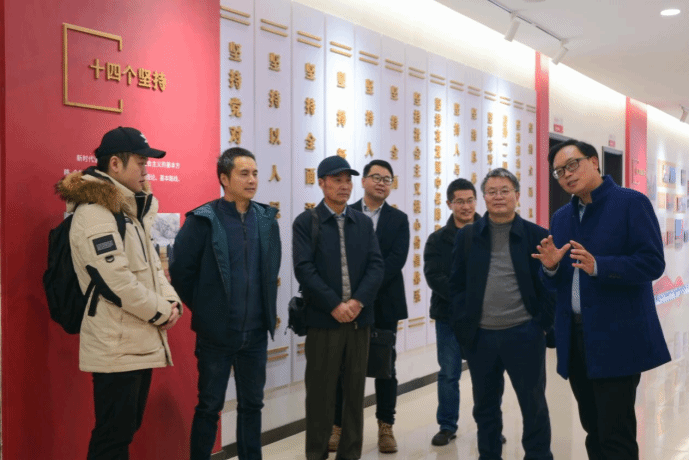 马克思主义学院党总支副书记、院长韦代周为专家介绍数智马院建设情况