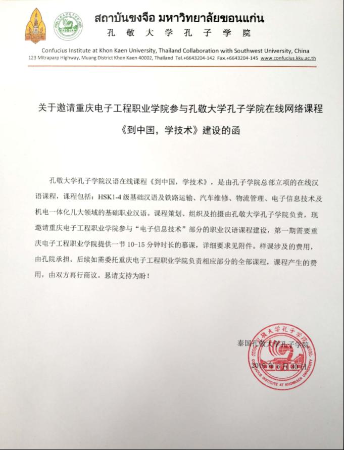 电子与物联网学院付渊和刘睿强老师,参与泰国孔敬大学孔子学院《到中国,学技术》在线汉语网络课程建设项目,并圆满完成第一阶段任务。