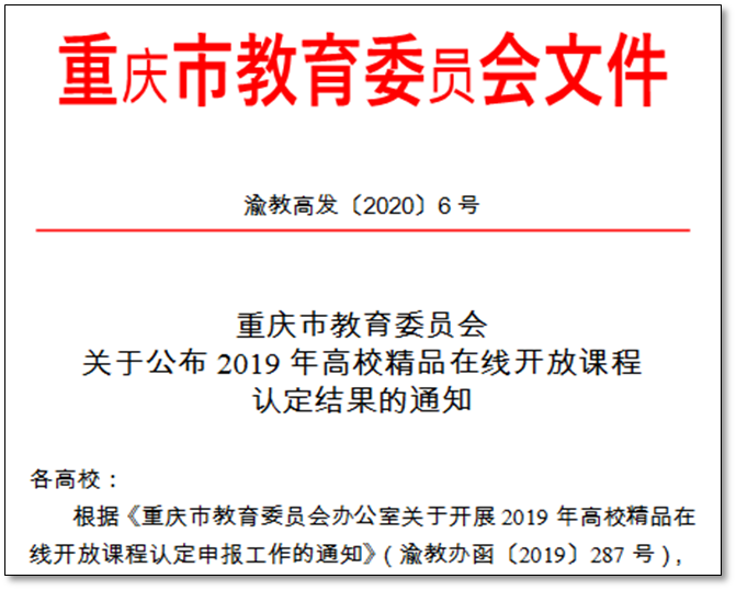 近日,重庆市2019年高校精品在线开放课程评审认定结果出炉,我校《工程数学》《移动通信网络优化》《广告创意与设计》《自动识别技术及应用》《思想道德修养与法律基础》《通信工程设计制图》6门课程入选“重庆市2019年高校精品在线开放课程”。