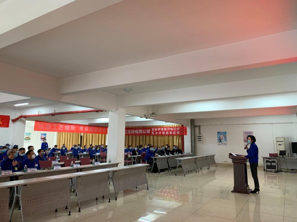 启动仪式上,渝江压铸有限公司副总经理吴自玉首先就企业新型学徒制项目的背景、培训安排、预期目标、实施计划、项目落实、后期成果作了介绍。2020年,学校将培养渝江及关联公司“英才培养计划” 人数为1583人,涵盖铸造工、数控车工、电工和模具工四个工种,为公司建立完善的讲师/师傅体系、培训课程体系、培训评估体系,打造可持续发展的技能型人才培训提升平台。