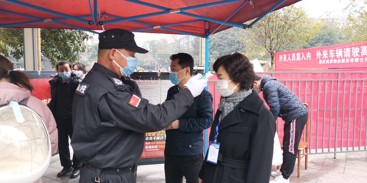 蔡道静一行在学校家属区接受体温测量