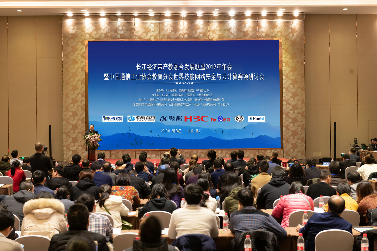 12月28日上午,“2019年长江经济带产教融合发展联盟年会暨世界技能大赛网络安全与云计算赛项研讨会”在重庆大学城顺利召开。该会由长江经济带产教融合发展联盟、CCF重庆分部主办,重庆电子工程职业学院和中国通信工业协会教育分会承办。长江经济带沿线部分职业院校书记、校长,相关企业、出版社等100多个成员单位的200余人参加了会议。