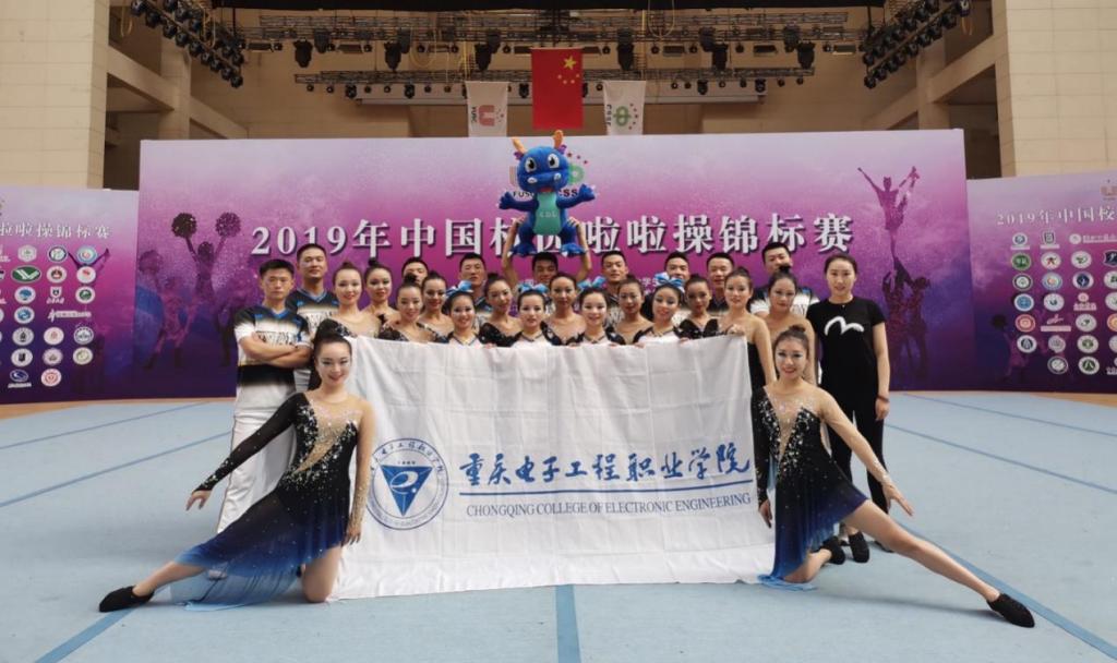 我校啦啦操代表队由体育与国防教学部副部长徐然领队,主教练彭天娥老师,教练周盈含老师、刘博源老师带队参加,经过激烈角逐,我校啦啦队最终荣获2019年中国校园啦啦操锦标赛团体总冠军,其中自选花球项目冠军、规定技巧项目冠军、自选爵士项目冠军、小团体技巧第三名、自选技巧项目第三名、双人花球项目第三名、双人爵士项目第四名。