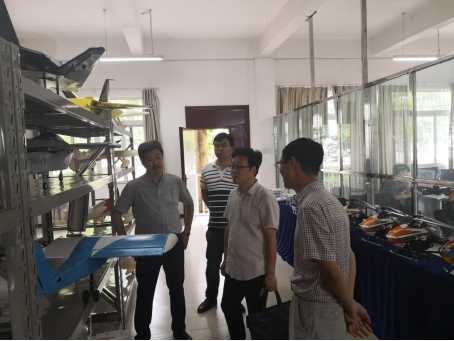 陈沛富主任对张进春院长一行的来访表示热情欢迎,并介绍了江津校区的基本现状和学校未来的发展规划;刘昭琴主任介绍了机电工程系的基本情况,并对无人机运用专业的专业建设相关情况进行了介绍。双方对无人机产业的发展前景、相关产业人才的培养模式及就业情况进行了深入地交流和探讨,随后,张进春院长一行四人在吴道明老师的引导下参观了无人机装调与维护、无人机设计与制作、无人机VR虚拟仿真等相关实训室。