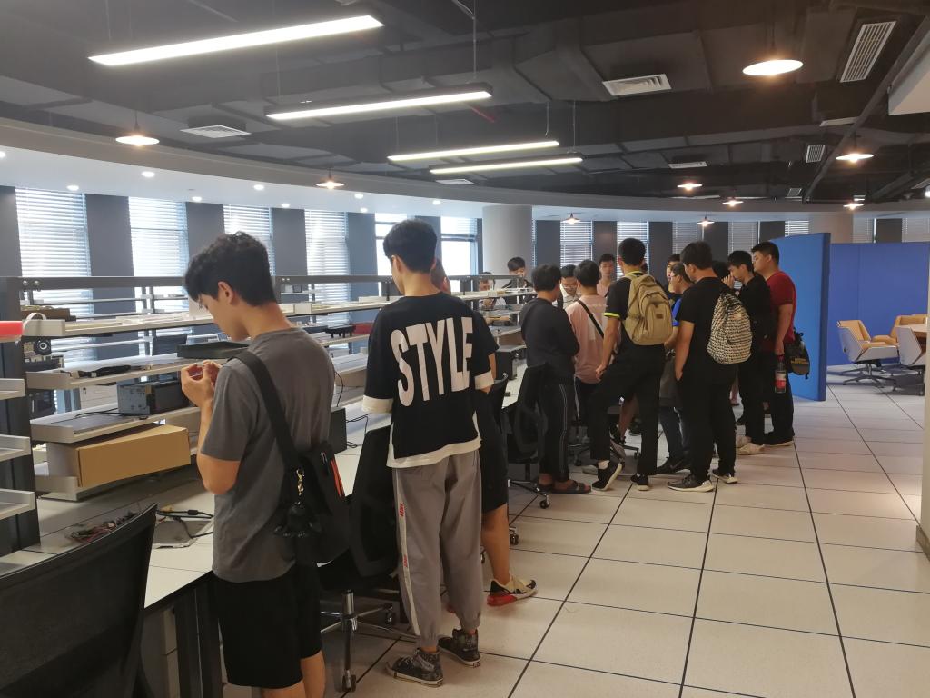 在参观过程中,重庆两江半导体研究院战略合作部主任吴茂琴和战略合作部经理谢诗杰简单介绍了公司发展情况。随后,集成电路学院常务副院长赵汝法博士在技术孵化中心详细讲解了公司的设计开发平台,以及在芯片设计、芯片应用等方面取得的成果和研究进展,主要介绍了SOC系统,FPGA智能硬件,以及依靠专用芯片打造的智能安防、卫星信号接收模块、智能交通等方面特色产品。留学生就芯片应用技术与赵博士进行了广泛交流,赵博士还专门给留学生们讲解了芯片的发展历史和微电方面的新技术展望。