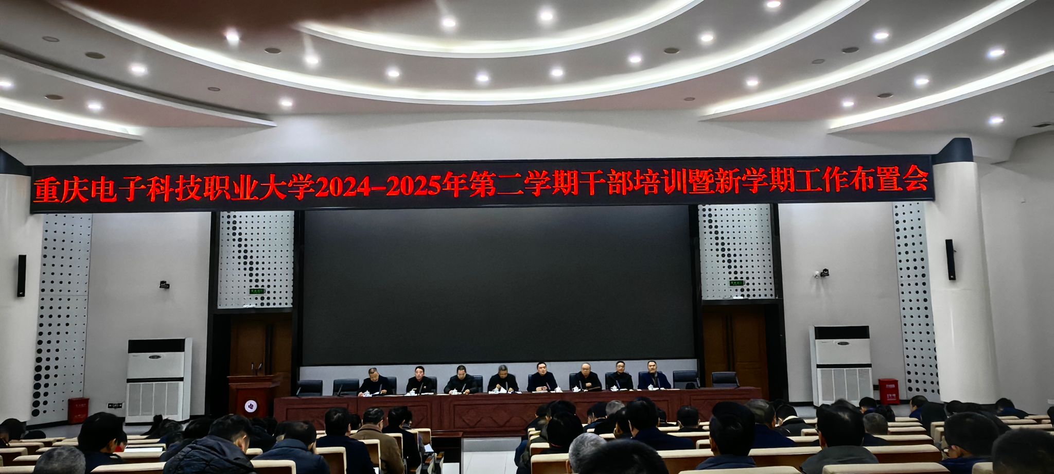 2025年2月14日,学校在博远厅召开2024-2025学年第二学期干部培训暨新学期工作布置会。全体校领导、处科级干部、专职组织员、教学督导、系主任等共200余人参加会议。