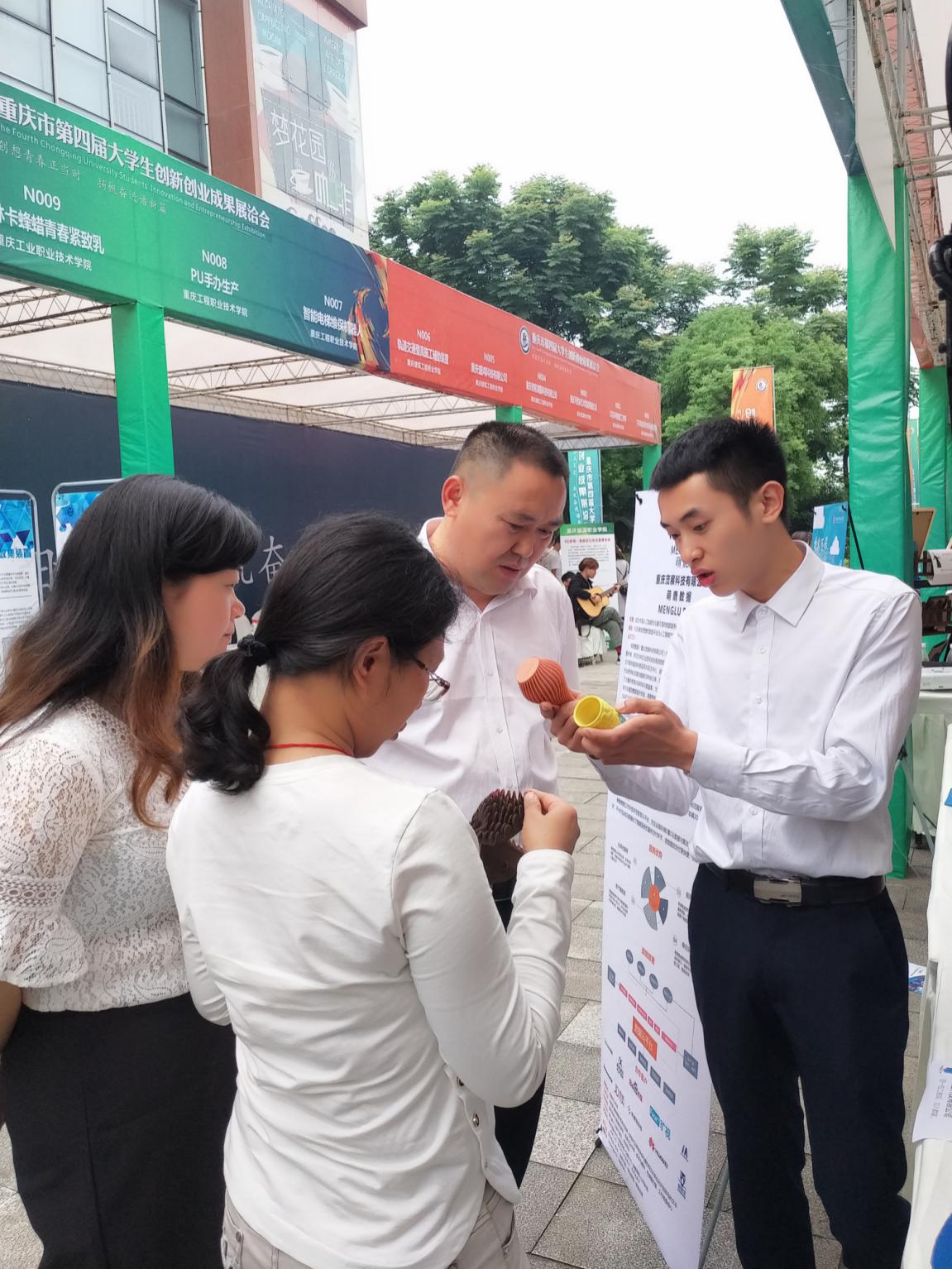 2019年5月31日-6月1日,由市教委、市科技局、市经济和信息化委员会、市人社局、市监管局、市税务局、沙区人民政府、广电集团主办,重庆市第四届大学生创新创业成果展洽会在重庆市大学生微企梦花园举行,吸引了来自43所高校的124个项目参展,14家社会企业及投资机构,近60位企业家、投资机构代表参与指导、嫁接资源。