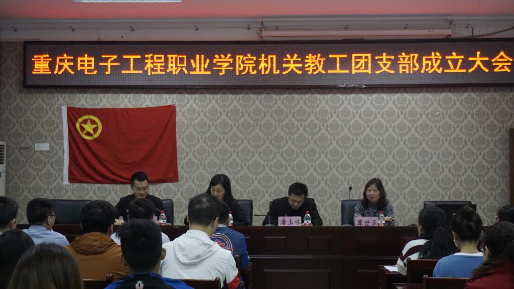 大会在庄严的国歌声中开始。首先廖世萍同志谈到近年来学校不断重视青年教师的发展和提升,希望青年教职工努力奋斗,为学校的发展贡献力量。之后,党委副书记唐玉林同志讲了四个方面的内容,一是学校党委高度重视青年工作,指出机关教工团支部成立的重要作用和意义;二是强调了共青团的工作要围绕强“三性”、去“四化”展开;三是要充分发挥好青年党员和团员两个身份的作用;四是希望青年教职工借助该平台共同成长成才,共建美丽的精神家园和青春家园。随后宣布重庆电子工程职业学院机关教工团支部正式成立并齐唱共青团团歌。