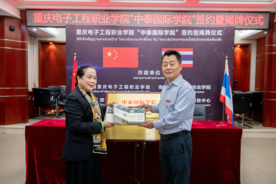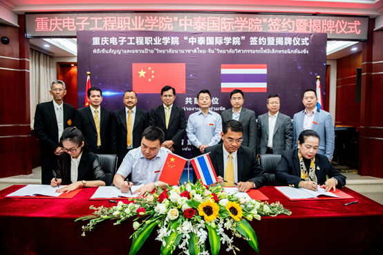 首先校党委书记孙卫平先生致欢迎辞,对各位领导嘉宾的到来表示欢迎。他表示,重庆电子工程职业学院作为中国100所国家示范性高等职业院校之一,拥有悠久的办学传统和优秀的师资条件。五年来,学校认真贯彻中国教育部印发的《推进共建“一带一路”教育行动》要求,积极实践“走出去”和“引进来”的职业教育开放办学理念,紧跟新时代职业教育步伐,加快了国际化办学进程。“中泰国际学院”就是学校主动融入、创新实践国家“一带一路”倡议的具体行动。孙卫平指出,国际化办学对于职业教育的发展,是机遇、也是挑战,更是责任。中泰双方有信心把该学院打造成一个集开云电子平台_开云(中国)、高端培训、成果孵化等功能的国际化平台。随后重庆电子工程职业学院“中泰国际学院”签约暨揭牌仪式举行。