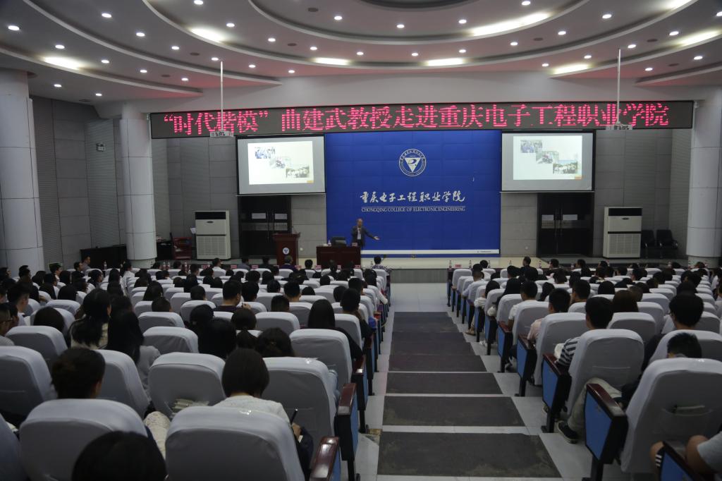 2019年5月10日晚,重庆电子工程职业学院博远厅座无虚席。受我校邀请,全国时代楷模、大连海事大学辅导员曲建武教授来到我校,以“给学生心灵埋下真善美的种子”为题为师生们作了精彩讲座。该活动由中共重庆电子工程职业学院委员会主办,党政办公室、党委宣传部、党委学生工作部、人力资源处承办。重庆大学思想政治研究中心副主任蒲清平教授、重庆商务职业学院副校长舒鸿、重庆商务职业学院学工部部长胡大勇、重庆医药高等专科学校学工部部长陈立书、校党委组织部、党委宣传部、党委学工部负责人、各二级学院党总支书记、副书记、学管科科长、团总支书记、全体辅导员、学生代表以及重庆医药高等专科学校和重庆商务职业学院的两课教师、辅导员代表参加了本次讲座。本次讲座由副校长谢义华主持。