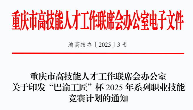 重庆市高技能人才工作联席会办公室发布《关于印发“巴渝工匠”杯2025年系列职业技能竞赛计划的通知》,为深入贯彻习近平总书记关于技能人才工作的重要指示批示精神,认真落实中办国办《关于加强新时代高技能人才队伍建设的意见》要求,紧紧聚焦“33618”现代制造业集群,加快推进“巴渝工匠2025”行动计划和“智能+技能”数字技能开云电子平台_开云(中国)试验区建设,根据《重庆市职业技能竞赛管理和奖励补助办法》(渝高技办【2021】14号)有关规定,着眼数字重庆建设和高技能领军人才培育需要,经申报审核、评估遴选、统筹整合,重庆市今年计划开展30项市级行业竞赛、18项区县级竞赛、10项企业和院校技能练兵比武。