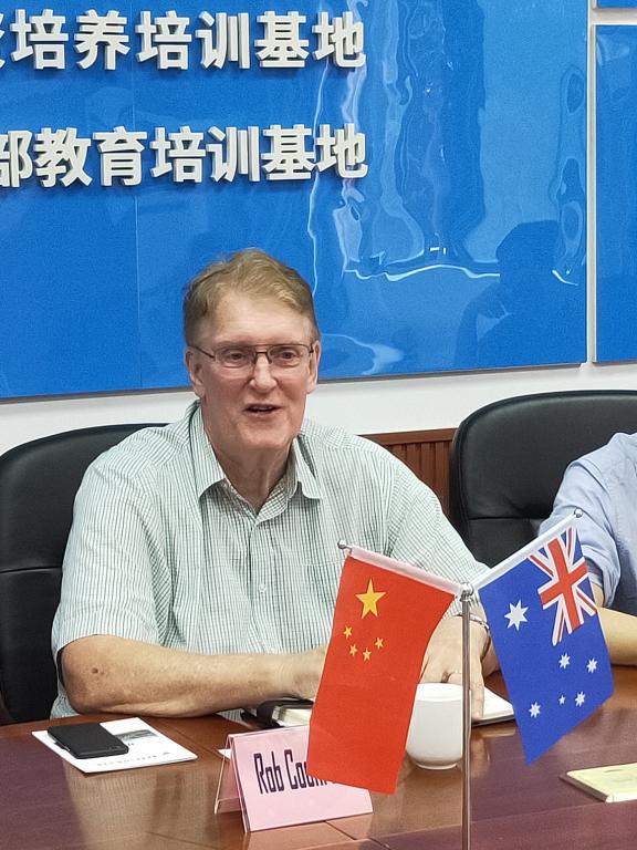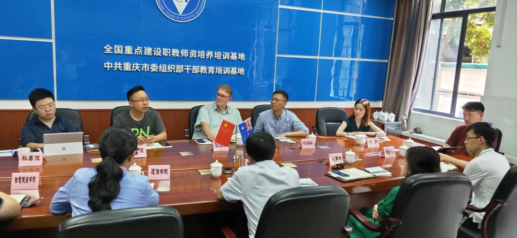 首先,国际交流与合作发展处处长莫绍强对来访的各位嘉宾表示热烈欢迎,介绍了学校的建校历史,专业特色及专业优势,我校在职业类院校排名全国50强,特色专业排名全国第6彰显了重电的势力,给与会者留下了深刻的印象。随后由重教国际副秘书长谢世波,就中外人文交流(重庆)试验园区签约建设、百富学院邹院长以及重教国际澳洲基地Robert主任的国际教育资料做了介绍。同时,Robert针对性的介绍了澳洲在通信领域、健康领域的资源优势。百富学院副院长Prof. Zou Changzheng也同步分析了通信人才及健康领域人才在澳洲长期存在巨大需求。