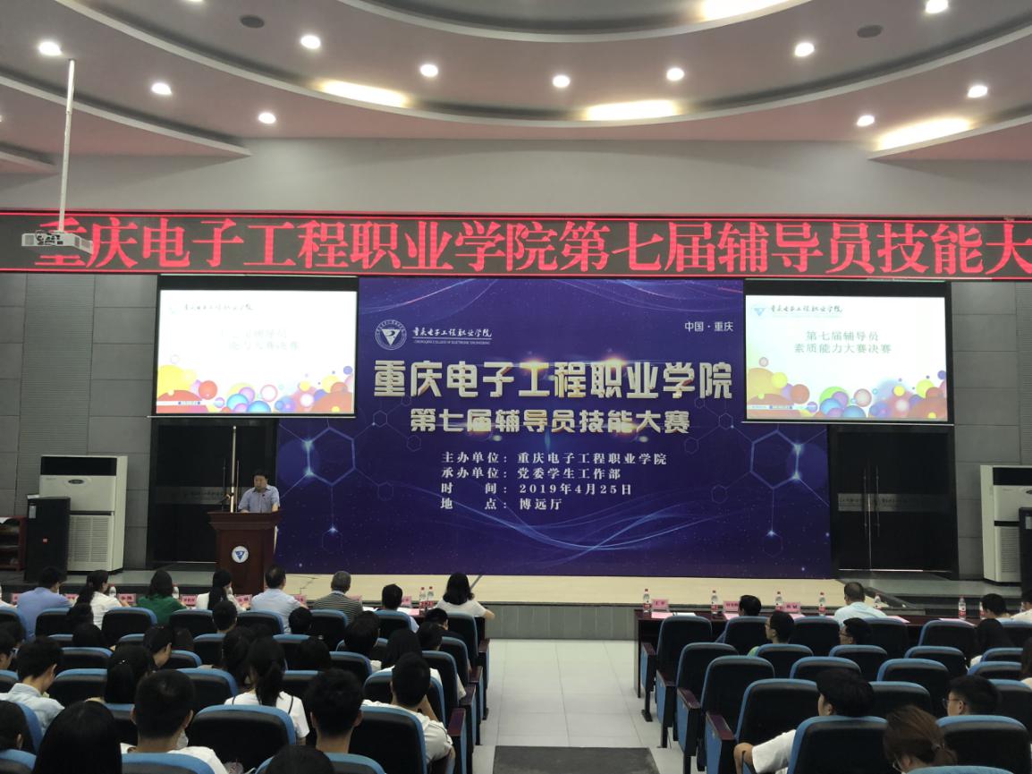 为深入贯彻落实全国高校思想政治工作会议精神和《普通高等学校辅导员队伍建设规定》要求,切实加强我校辅导员队伍专业化职业化建设,提升辅导员理论水平、专业素养与工作能力,2019年4月25日下午,重庆电子工程职业学院第七届辅导员技能大赛决赛在博远厅顺利举行。经过初赛、复赛、决赛的角逐,评选出一等奖两名、二等奖三名、三等奖六名。