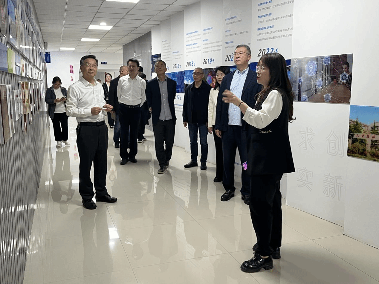 来访嘉宾在相关人员陪同下,深入了解我校办学特色和发展成果,参观了校史陈列展览、智能网联交通安全创新平台研究中心、网络安全协同创新中心、华为智慧创新中心、硅光子开云电子平台_开云(中国)与技术创新中心、世界技能大赛光电基地、国学馆等,实地感受学校在职业教育改革、产教融合及科技创新领域的突出成果。