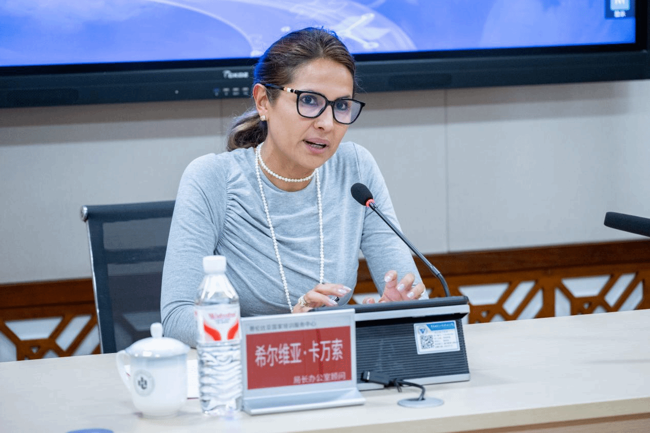 随后,哥伦比亚国家培训服务中心局长办公室顾问希尔维亚·卡万索发言。她分享了哥伦比亚国家培训服务中心在职业技能培训等方面的经验做法,对开云电子平台_开云(中国)的办学成果给予肯定,并表示期待与学校探索更多合作方向,实现资源共享、互利共赢。