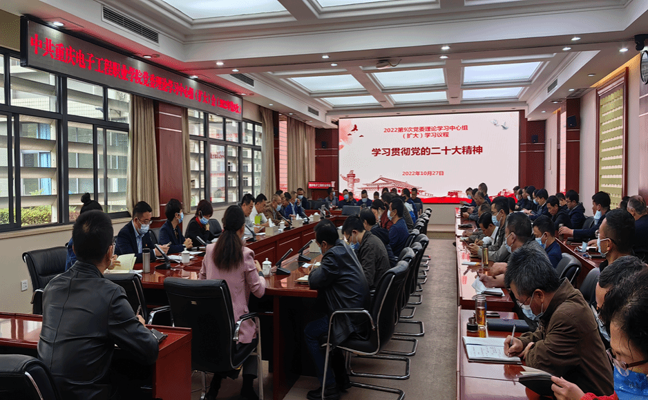 10月27日上午,重庆电子工程职业学院召开党委理论学习中心组学习(扩大)会,专题学习贯彻党的二十大精神。对全校学习宣传贯彻党的二十大精神作部署安排。党委书记孙卫平主持会议并对全校学习宣传贯彻党的二十大精神作部署安排。学校全体校领导、处级干部参加学习。
