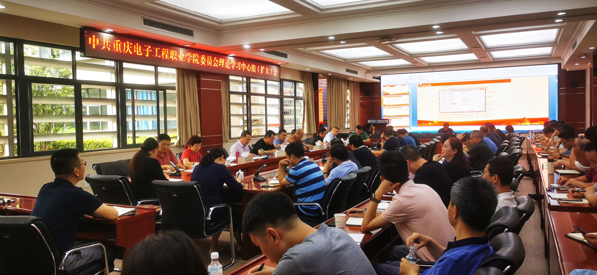 6月9日上午,重庆电子工程职业学院在博润厅会议室召开党委理论学习中心组(扩大)学习会,会议主题为“学深悟透总书记对高校系列指示精神,凝心聚力推动学校高质量发展”,专题学习习近平总书记在中国人民大学考察时重要讲话精神以及党的十八大以来习近平总书记对高校师生一系列考察指示精神。校党委理论学习中心组成员、处级领导干部参加会议。学校党委书记孙卫平主持会议。