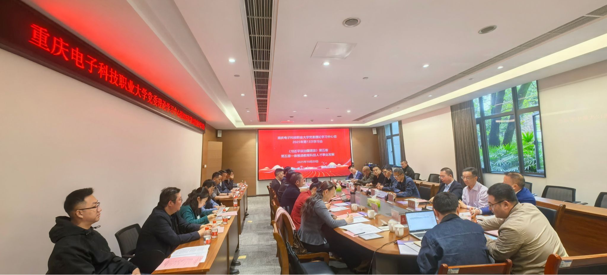 10月20日,学校党委理论学习中心组在两江教学点召开2025年第12次专题学习会,全体校领导、全体党委委员参加学习。集中学习会开始前,全体同志围绕学习主题调研了两江教学点的建设情况。