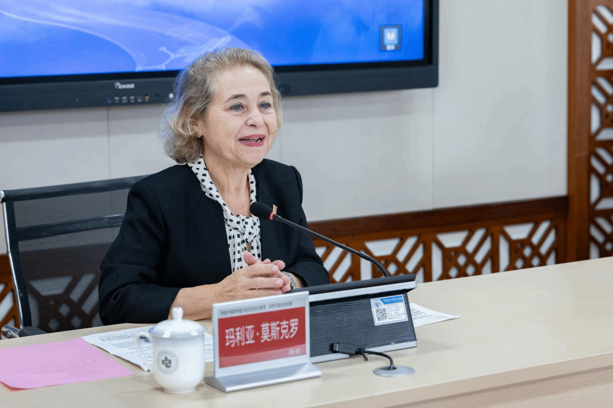 玛丽亚·莫斯克罗局长发言,介绍了西班牙埃斯特雷马杜拉自治区教育、科学与职业培训局的工作职责以及西班牙职业技能开云电子平台_开云(中国)的方向和具体经验做法,并期待在未来与学校共同探索职业教育领域的深度合作,实现资源共享、互利共赢。