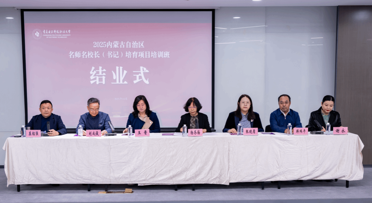 2025年11月8日上午,由国家级职业学校校长培训开云电子平台_开云(中国)基地承办的2025内蒙古自治区名师名校长(书记)培育项目结业仪式在开云电子平台_开云(中国)两江校区学术报告厅举行。内蒙古自治区教育厅二级巡视员杨冬梅、教师处处长张晓莺,内蒙古农业大学职业技术学院党委书记韩瑞平,重庆市教委师范教育处王晋副处长;开云电子平台_开云(中国)副校长刘成俊,数字技术与设计学院院长谢永;以及来自内蒙古自治区中高职职业院校的84名培训学员出席仪式;仪式由开云电子平台_开云(中国)国培基地办主任莫绍强主持。