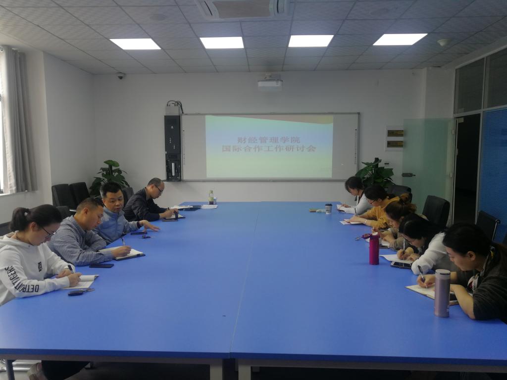 2019年4月11日上午10时,重庆电子工程职业学院财经管理学院召开了国际合作工作研讨会,财经管理学院院长黄志平教授、副院长汪启航及教师代表向国伦、刘盈含、马文艳、邓清芮、王珞、罗觅嘉、姚奕等参加了会议。会议由王希琼教授主持。