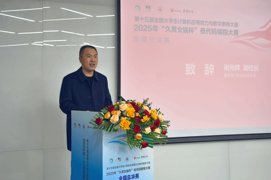 作为本次大赛的承办方,学校高度重视,各部门协同联动,为大赛提供了专业的赛事组织和周全的服务保障,赢得了主办单位、参赛师生的一致好评。11月15日,大赛开幕式举行。国家职业教育指导咨询委员会委员高林、全国高等院校计算机基础教育研究会鲍洁、北京久其软件股份有限公司芦星等嘉宾出席。鲍洁与芦星先后发表了致辞,充分肯定了重电的赛事组织能力与育人成效。最后,高林宣布大赛开幕。