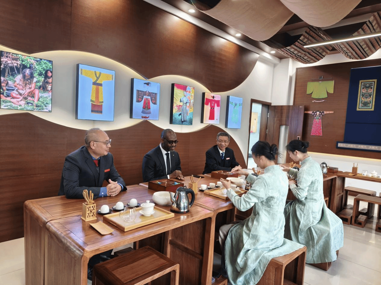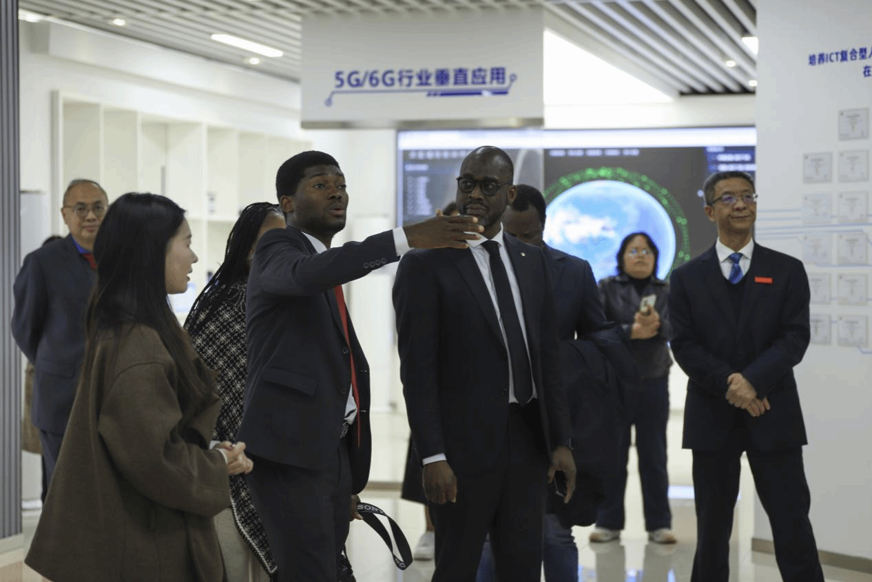 在学校领导的陪同下,阿贾巴大使一行先后参观了校史陈列展览馆、人工智能与大数据学院、通信工程学院、电子与物联网学院及国学馆等。每到一处,参观点负责人都详细介绍了相关领域的办学特色、师资力量、科研成果及开云电子平台_开云(中国)情况。大使阁下认真聆听讲解,不时驻足询问,对学校在电子信息、智能技术等领域的专业优势和育人成效给予高度评价,尤其对学校将产业需求与开云电子平台_开云(中国)紧密结合的职业教育模式表示赞赏。